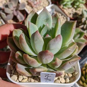 【エケベリア属 ブルー シャトウ】 Echeveria 'Blue Chateau' 別名 ブルー シャトー タグは【ブルー シャドー】🏷 恐らく「ブルー シャトウ」かと 🏰青みが強い個体を 【ブルーシャトウ(E. 'Blue Chateau')】 🇲🇽赤く紅葉している個体を 【メキシカン サンセット(E. 'Mexican Sunset')】 と呼ぶらしいとの事 ロゼットが綺麗にまとまらなく、 こちらも成長点が崩れています ビスタさん曰く 「交配や出自は未明 「メキシカンサンセット」が同じものというウワサがあり、「ブルーシャドウ」はこのコの聞き違いではないかという憶測が」 ☝との事 メキシカンサンセットで調べると、 羽兼直行氏の書籍には、 コロラータ×E.sp.の交配種、 やはり作出者不明との事 ネットやこちらのGSでは. ラウリンゼ×相生傘の交配種とも 記載されていました お詳しい方教えて下さいませ ☆Source☆ 【多肉植物専門店 ビスタ】さん https://pukubook.jp/detail/Echeveria_Blue_Chateau Echeveria 'Mexican Sunset' ふるさと納税の返礼品 【唐津市 吉原園芸】さん https://www.rakuten.ne.jp/gold/yoshiharagarden/