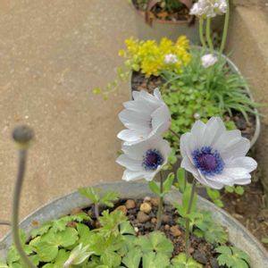 アネモネ フルゲンス、ホワイトシェード🤍 小輪の花に濃いブルーのシベがとても可愛いです✨ 前シーズン植えたものが、また咲いたようです。 ここは道路沿いの石だらけカチカチの荒地で、手入れしない場所ですが、可愛らしいお花が咲くとお水あげたり肥料をあげたりするんです😅 急にお庭のあちこちに開花の気配がし始めたので、記録を残さなくっちゃ。と思ってます。