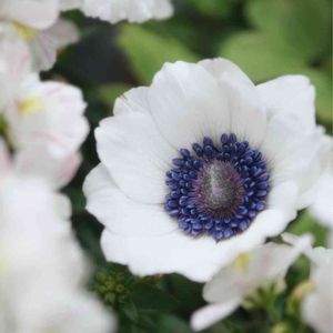 今日のお花☆ アネモネ フルゲンス ホワイト✨ 純白の花びらにブルーのシベがアクセント💓