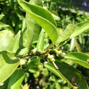 すだち💚 うちにある柑橘類の木、いっぱい花をつけ小さな実をつけても雨風でいつも育たず😫 でも今年はこんな実が…😊 根性のすだちくん‼️