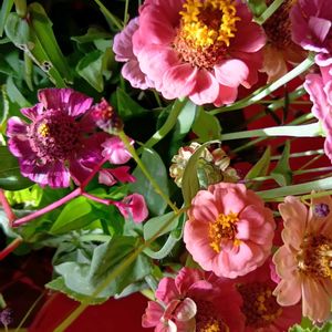 おはようございます。 バケツの中の花で、失礼します。😊 お墓参りの花です。 昨日、庭のヒャクニチソウさん、全て✂️して来ました。🥰 ワレモコウの花も、あります。 今年も、お墓参りの花だけは、 庭植え花だけで、済ませました。 ( ´•ᴗ•ก)🐱🐾