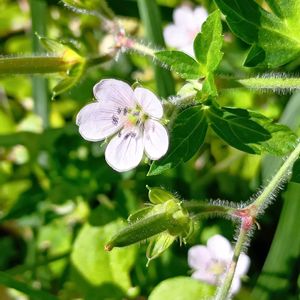 おはようございます。 🏷️今日のお花! ゲンノショウコさんです。🤍色の小花が、可愛いです。🥰 種のクルクルした感じも、好きです。😊 庭で、咲いてた🩷色のオキザリスさんも、同じ花の形ですね。(˶ᵔᵕᵔ˶)🐱🐾
