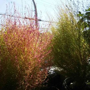 朝、友人から うちのコキアが紅葉したよー のメールが 自転車走らせて急いで会いに🎶 なんと❗️ 小さめの植木鉢に50センチ程の可愛いコキアが綺麗に色付いてていました。♥️ 送られてきた写真では、もう少し大きくみえたのになー😢(ゴメン) 彼女曰く、水やりも欠かさずやったのに育たなかったと、、😢 今度はもう少し大きめの鉢に植えましょう‼️😃 来年もよろしくね💕