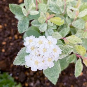 コデマリ ピンクアイスが開いてきましたꕤ*。゚ 斑入りの葉っぱと可愛い白の小花はツボです💕💕