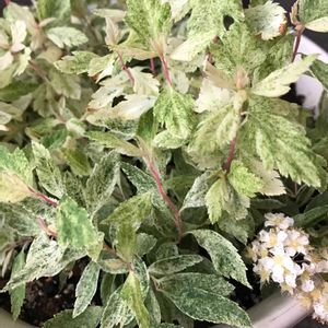 斑入りのコデマリ 桜でまり ピンクアイス💕 お店で見かけて迷ったあげく買わずに帰ったら🥺 気になってしかたなく〜 お迎えしました 斑入りの葉に、ピンク色の茎と 蕾の可愛らしさに惚れました❣️ 白い花が咲くそうで楽しみです😊 鉢植えにしましたが、 ちょっと元気がなく 心配🥺