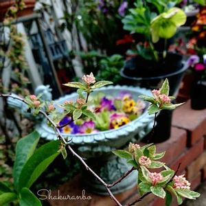 班入りコデマリピンクアイス、新芽が出てきました。。。 お花は、どうかな⁈ 花芽は見つからないけど...,。 いつかは、咲いてくれるかな⁈ いつかは〜〜きっと!😂