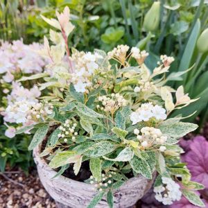 🏷️今日のお花 コデマリさん💗 斑入りマイブームだった頃(今も?)、ちゃんと育て方を調べずに、衝動買いしてしまったコ 狭いだろうに、小さい鉢でも何のその、手間をかけさせることなく、元気でいてくれています🤗💞 ありがとう、秋になったら、鉢増しするね(忘れなければ😅)