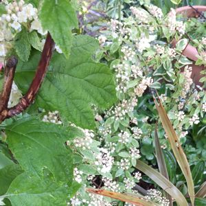 やっとコデマリが、咲き始めました。 カシワバアジサイの葉が雨後、急成長したような…