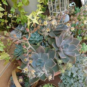 ゚°(´-ㅁก`)オハヨーゴザイマス 昨夜、お夕飯を食べずに寝た四女。5時の早起き💧ママはあと30分寝たいんだけど~(^ー^;A ↑玄関横の多肉花壇。全体像です!ミセバヤがどんどん増えて、大きなセンペルを飲み込もうとしています(´ロ`ノ)ノ 移動させようか悩むな…