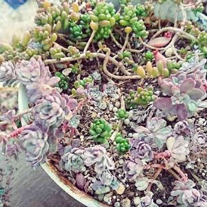 子持ち蓮華と玄界岩蓮華かなぁ?!自分で寄せて忘れてしまう⤵️ 子持ちちゃんは名前の通り小さな芽をいくつも出してるよぉ~ カカカカ((*゚Д゚*))カワユス♡