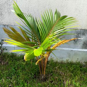 購入して2ヶ月のココヤシさんです🌴 夏にいっぱい成長してくれましたよ〜☺️ そろそろお部屋に入れないといけませんね😌