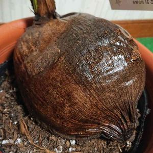 ココヤシ🌴🌴 発芽して半年 種をピカピカにして室内で楽しんでます。 水耕栽培でも今のところ問題なしです。