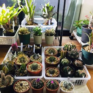 ギョッ😖外に出てみたら雨☔️サボテンたちがしっぽりと‥慌てて取り込んだついでに数えてみたら27鉢ありました)^o^( あと三つあるとキリがいいかな😎