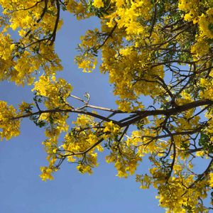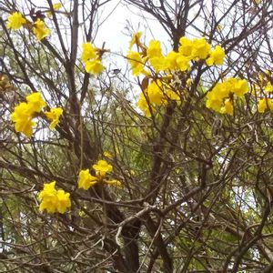 馬見丘陵公園にて、黄色いお花「イペー」をパチリ!📸🤗😊😄✌️ 「イペー」はブラジルの国花🇧🇷、ラッパ状の鮮やかな黄色いお花が木全体を覆い、人目を引きます。💛🌿👌