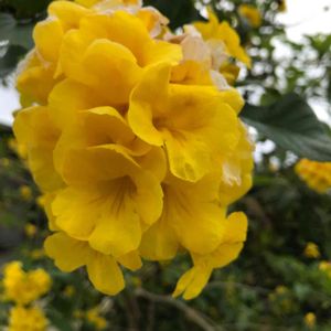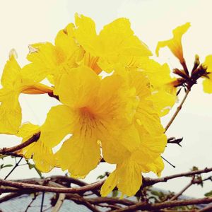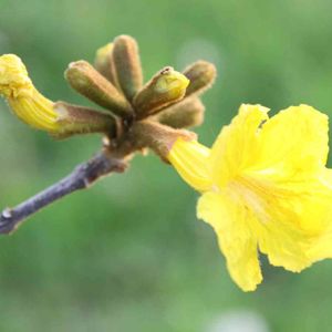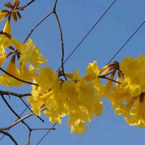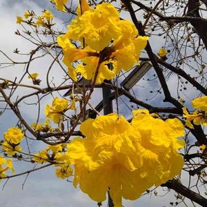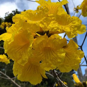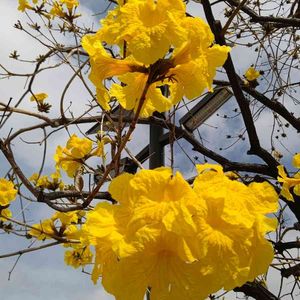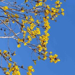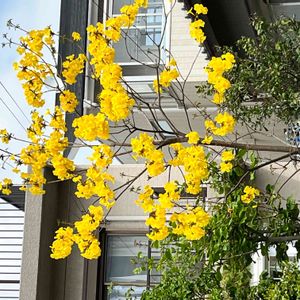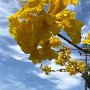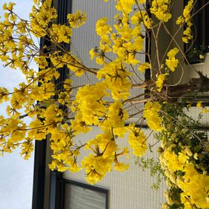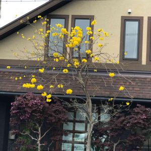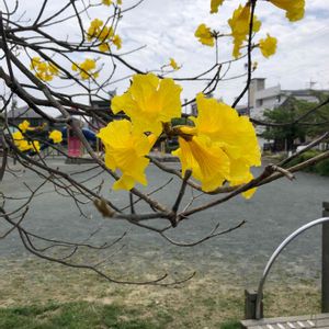 近所で見かけるようになりました。コガネノウゼンとも呼ばれるシソ目ノウゼンカズラ科の広葉樹。ブラジルの国花だそうです。日本では主に南国で見られるようです🌻