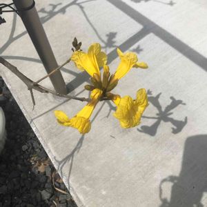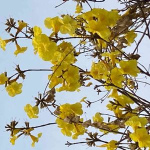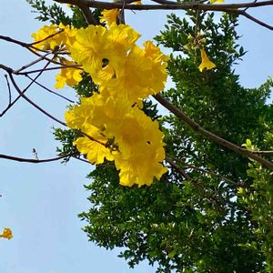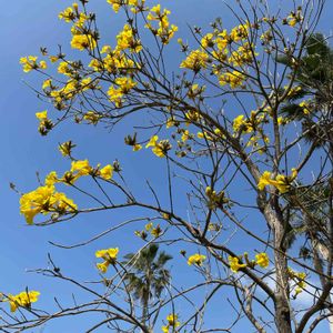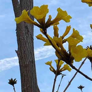 今 指宿市内では この鮮やかな黄色い花🌼イペーが 咲き出し あちこちで目立ってます😃 南米原産のノウゼンカズラ科の落葉高木。 花期は 4〜5月🌼 樹高は 5〜8mになります。 今日 4/1 🤳 潟山にて
