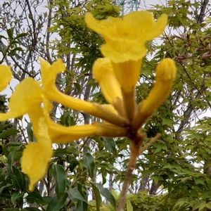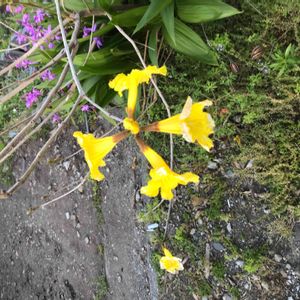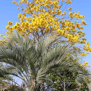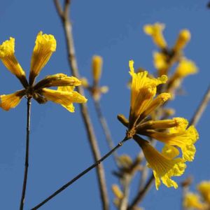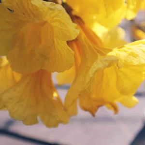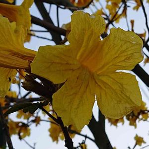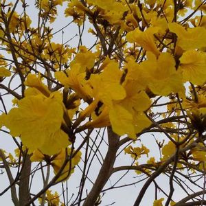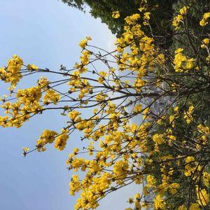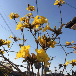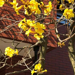 沖縄に多い花🌸 近くでも、 街路樹や公園で見られるブラジルの国花です 黄色の桜とも言われている花で見ると幸せ🎶 庭の子は、3年経つのに葉が出るだけで いつ咲いてくれるかな😊