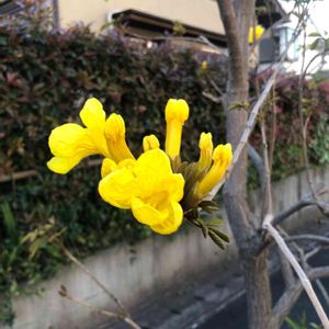 立派なお宅の玄関先にあった木に、キレイな黄色いお花が咲いてました。なんという名前の木なのか気になります!