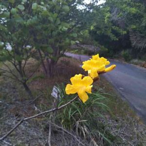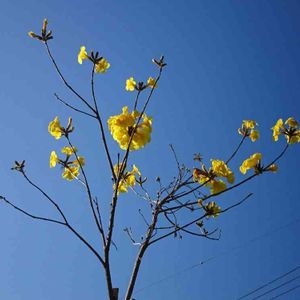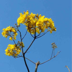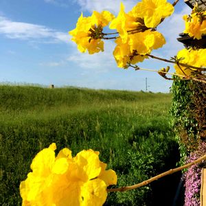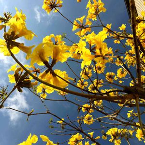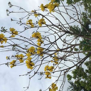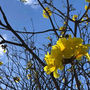 おはようございます😊 千葉の空、晴れ☀️ ご近所さんのお庭にある花木💛綺麗な黄色の花で背が高く葉っぱはあまりなくビューンと伸びて咲いてる花の名前を教えてください? イペーと教えて頂きました💛 ありがとうございました🙇