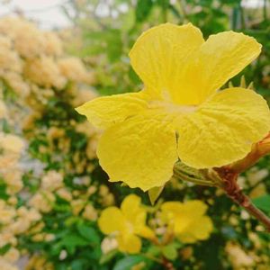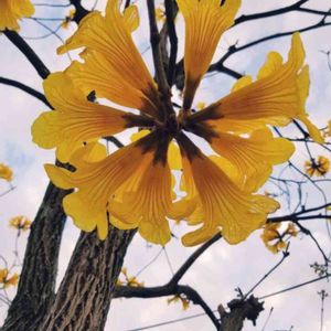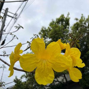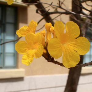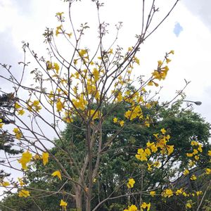昨日、東京ディズニーランドに行った時に見かけた木に咲いていたお花です。 黄色い鮮やかなお花がぽつぽつ ぽつぽつと咲いていてとつても可愛らしかったです。 何という名前なのか教えなのか教えてくださいませm(__)m