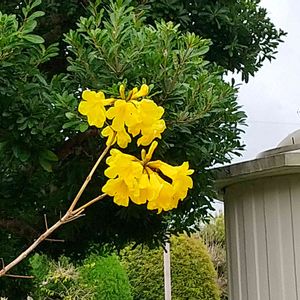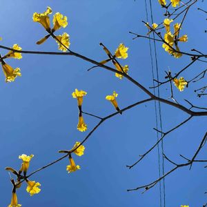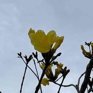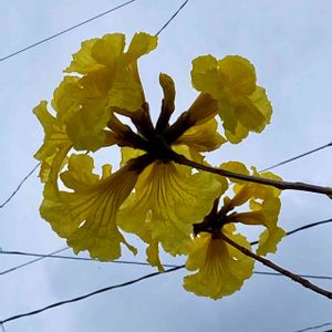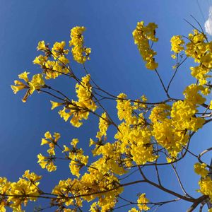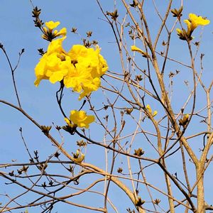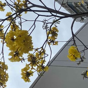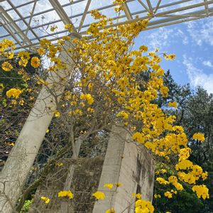🏷️黄色い魔法 に参加します◌˳˚⌖ ◌˳˚⌖ 《イペー》〜ⅰ イペーは、南米原産のノウゼンカズラ科ハンドロアンサス属(タベブイア属)の落葉高木です。 大輪の黄色い美しい花を咲かせる樹です。 耐寒性がやや弱いようで、高知でもそれほど見かける機会はないそうですが、 南国鹿児島ではあちこちのお宅で庭木として見かけます💛 大きくなる木で、桜のように花が散ってから葉が出てくるため、 この季節になると青空に映えて目立っています✨ 大輪の鮮やかな黄色い花は珍しくて魅力のある花木です✨💛✨ 2023.4.1 フラワーパーク