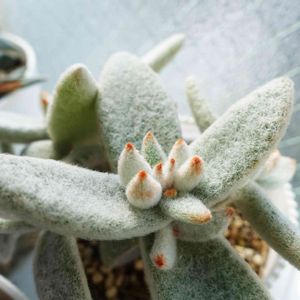 産毛ちゃんの中でもかなり大きめの子。 お花の蕾がオレンジでコロンとしていてなんだかかわいいです。 産毛びっしり。
