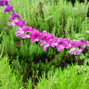 雨上がりのアメジストセージ。 フワフワな産毛が雨でちょっと濡れぎみです。
