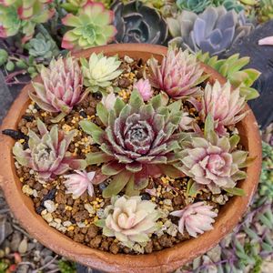 🪷センペルビウム バニラシフォン🪷 ようやく念願のバニラシフォンと出会えました!!🤗 子株の白ピンクは間違いなくかわいいけど、親株も白が入って斑入りみたいでめちゃくちゃキレイなんですけどー💘✨
