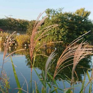夕暮れのススキ 後ろに白鷺がイッパイ😃 白い点々😅