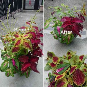 ズット気になりながら……伸び放題 コリウスの散髪?✂️✨~スッキリ😄 花言葉は「健康」 1年中美しい葉っぱをつけている状態から、健康な姿に例えられてるようです。 寒さに弱い花だけど 来年も咲くように暖め~育てなくては😐