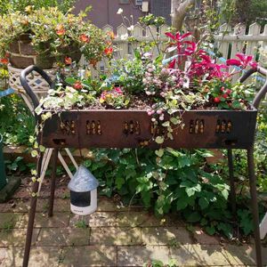 おはようございます❤◡̈* 古〜いBBQ台!! 捨てようと思ったけど、勿体なくて😜 寄せ植えを作ってみました🥰