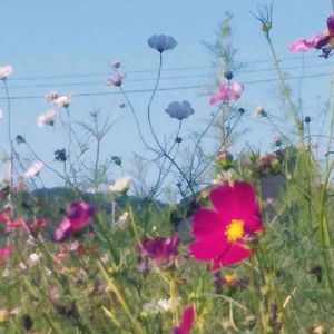 「コスモス畑と青い空」 今日から、10月ですね。 移り行く季節を植物たちと一緒に。🌿🍁🍂 (こちらは、昨日のpic) 皆さま、今月もよろしくお願いいたします🎵