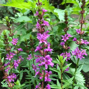 禊萩(ミソハギ) 我が家のお盆は今日からです 盆棚を作ります 閼伽水(アカスイ お供えの水)の側には5~6本束ねた ミソハギの花を添えます 最近はお花屋さんでもミソハギを見かける事は少ないです あったとしてもステキなお値段👛💦 なので苗をお迎えして育て始めました☺️ 背景には毎年零れ種からのメチャメチャ綺麗な自慢のシソ🌿