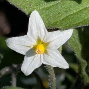 イヌホオズキ(犬酸漿) ナス科ナス属 涼しくなって綺麗な花を付けました 清楚な白い花弁は少しフリルになります 果実の柄が一点に集まらず 交互に並びます 黒くなった果実は光沢がありません