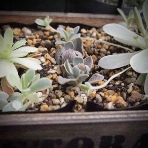 子持ち蓮華錦さん♪ ランナーがたくさん鉢から飛び出してきたので、木箱に植え替えました✨ どんどん増えるといいな〜🥰