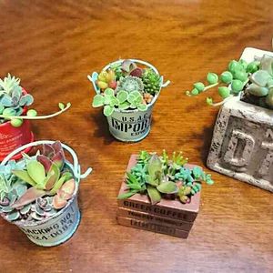 ちょこちょこ作り続けてやっとこさ全員集合❕ あしたお嫁入りする前に記念写真🍀 しばらくミニミニ寄せ植えにはまっちゃいそう😆💕