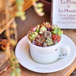 葉挿し多肉苗を使ったミニカップ&ソーサ寄せ。 みんなミニミニ。 おいしく頂きます。