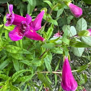 来週に雨が降るとかなので、今のうちにシュッとした子達をお見せしておきます。 ①カンパニュラ ラプンクロイデス 上の方まで咲くと嬉しいのですが、、 ②ペンステモン ルビーレース ③ペンステモン スモーリー ④ペンステモン ハスカーレッド 大きさは②>④>③ ルビーレースがダントツで大きいです ⑤ゴンフォスティグマ 昨年花終わりに買った見切り品。無事に咲いて良かった‼️ 難しい名前ですが 🦊キツネさんと🐻クマさんみたいな名前と思って覚えました キツネの『ゴン』(新美南吉「ごんぎつね』より)、 さらにキツネ『フォックス』、 『ティ☕️🫖』 『クマ』🐻 😆どお?覚えた?