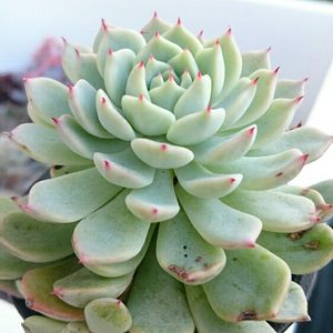 今日もお疲れ様でした(*^▽^*)💚💗💛 🏷 多肉植物 野ばらの精 🪴🪴🪴 暑い夏にも生き残りました♪(๑ᴖ◡ᴖ๑)♪ とっても嬉しいです😍😃💕 元気に育って欲しいです٩(๑❛ᴗ❛๑)۶💛💚💗 今日はとても暑くなり、同じ部屋に置いて扇風機の風を当てていましたよ(((o(*゚▽゚*)o)))♡💚🍀☘️🌿🌿 栽培難易度 ★★★☆☆ 属名 エケベリア 流通名 野バラの精(のばらのせい)、ザラゴーサ 原産地 中米 育ち方・特徴 🏷 夏の育て方 栽培環境 半日蔭の風通しの良い場所を好みます。雨水にあてないようにします。 水やり 断水を心がけます。葉が萎れてきたら夕方に土の表面が濡れる程度サラッと与えます。 病気 品種によって黒班病が出ることも。黒班が出てきたら極力水やりを控え、より風通しの良い環境があれば移動します。それによって枯死する事は稀ですが、黒班が出た部分は治りません。 害虫 ワタムシ、カイガラムシ、夜盗虫、アブラムシなど。いずれも浸透移行性の殺虫剤を撒いておくと予防、駆除ができます。季節の変わり目に撒くと有効です。 植物の状態 ロゼット型の品種は葉がひらき、上に伸びる品種は少しダラッとした印象になる事も。 植え替え・ カット芽挿し 極力手をかけないようにしましょう。植え替えをする場合は根になるべくダメージをあたえないように行います。カット芽挿しはお勧めできません。 ポイント 夏場の水やり注意点として、ロゼット型で葉の間に水が溜まりやすい品種は水が溜まった部分が傷んでしまう場合がありますので底面給水をすると良いでしょう。