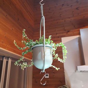 ポトス グローバルグリーン🌿.∘ フィカス プミラ🌿.∘ 植え替えして、初めての DAISOハンキング紐使ってみたら …いい感じになったかも♥️ ヤタ───ヽ(〃∀〃)ノ───♪ ポトスもカットしてスッキリ✂️✨