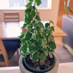 こんばんは♪ 先週お迎えしたフィカスプミラさんです🪴 ずっとDAISOにあって、気になってて、この子だけこんなにかわいいのに売れなくて、2ヶ月くらい悩んで、連れて帰ってきました(*゚∀゚*) 斑入りでとっても可愛らしい🌱