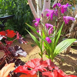 春がかけ足でやって来て、庭の土が隠れるくらい植物がパワー全開🥀 一気に賑やかに✨ 奥から ・白樺ジャクモンティ(暑さに強い) ・シラン ・ヒューゲラ