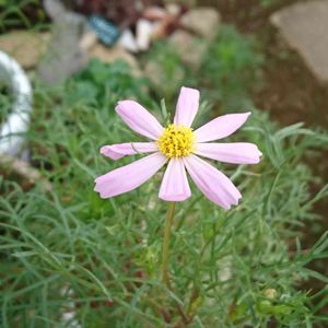 今日も暑くなりそうです。 種から育てた💠コスモス💠です。 鉢植えです。 茎も花も ヒョロヒョロで頼りない感じですが、 真上を向いて咲いてるところがいいな。