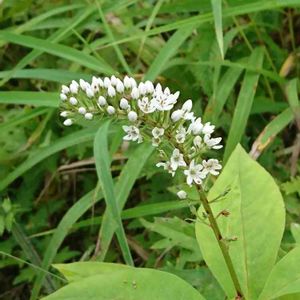「オカトラノオ・丘虎の尾」 サクラソウ科 宿根草 丘に咲く、虎の尾の様な花。 覚えやすい名前です😊 風の仕業ではなく、植物の性質で、💠お花が曲がります。 その性質、応援したくなるナ 日光霧降高原 キスゲ平