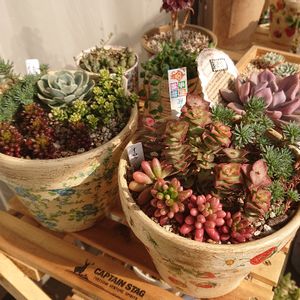 来週、義母のお誕生日なので、寄せ植えを作ってみました。 七福神をメインに、小さな子たちを寄せてみました😍 好きなことに集中出来るって最高😍⤴️⤴️