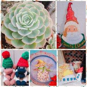 先日 トワさんに頼まれていたものを やっと持っていきました~🎵 せっかくの休みだし トワさんに会いに行けるので 少し前にWSで作ってた リメ鉢を教えて欲しい~🎵と言ったら 快く引き受けてくれて 朝から 夕方まで一日中 楽しくおしゃべりしながら リメ鉢作りをしました~♥ お庭も トール作品もゆっくり見せてもらって このトール作品 今の季節に出さないなんて勿体ない💦って言うと 「持って帰り~🎵」 と…いつもの太っ腹なお声が…✨ 遠慮なく いただいちゃいました~(๑´ლ`๑)フフ♡ 前に貰い損ねてたトールのお家に ソクモンちゃんのクリスマスカラーの帽子 クリスマスのリメ鉢もありがとう♥ あーちゃんから おせんべいもいっぱい貰いました♥ 楽しい時間はあっという間に過ぎちゃうけど 充実した1日が過ごせて良かったです✨ トワさん お世話になりました┏○ペコッ picの子は多肉の世界に引き込まれ始めた頃に 実家から貰ってきた七福神~♥ 一時は汚くなってたんだけど 綺麗に大きくなり 足元に赤ちゃんいっぱいです(๑´ლ`๑)フフ♡