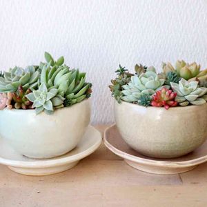陶芸の体験教室で作った器に寄せ植えしました😃 しばらくこちらの多肉たちは、室内組🏠