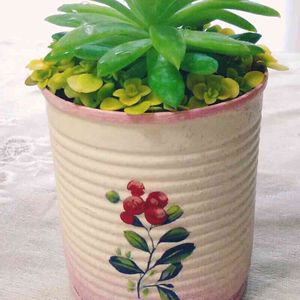 💦鉢減らしのために、とりあえず缶に寄せてみたら変てこりんになった💦 「散らかったオモチャ箱」のイメージということにしよ😅1月に投稿したセネシオスタペスフォルミスはめっちゃ紫色になってた👀