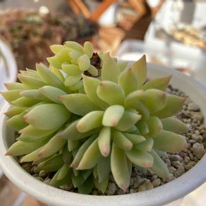 ファンファーレ🎵 セダムとエケベリアの交配種だそうです 明るい緑の先っちょがちょっとだけ ポッとしてます💗(〃▽〃)