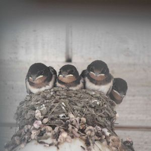 近くの銀行の入り口上にツバメの巣がありました。 中には雛鳥が3羽はいることが確認できました。(それ以上いるかもしれませんが嘴は3羽分は見えました) 親鳥は餌を捕りに行っていていなかったので、巣だけでも撮ろうと思ってシャッターを押した瞬間に親鳥が戻ってきてあっという間にまた去っていったので 偶然撮れたものです。 ブレブレで、しかも植物でなく申し訳ありません🙇♀️